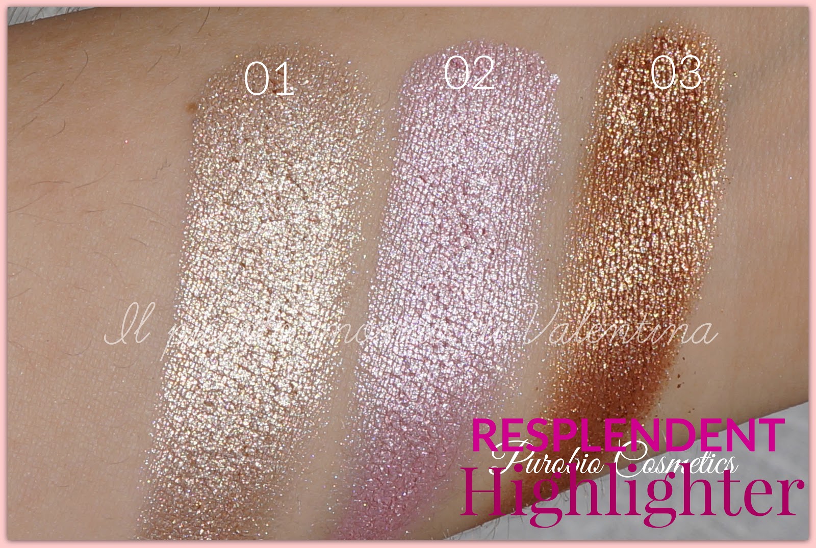 Il mio primo illuminante rosa che è stato anch’esso una splendida scoperta poiché risulta davvero molto fine ed elegante ed al tempo stesso sulla pelle chiare da un effetto molto leggero. Chi ha visto quest’illuminante su di me reputa che sia anche più naturale dello 01 poiché vira al rosato ma io personalmente trovo più naturale lo 01 avendo un sottotono molto freddo.