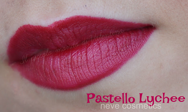 A differenza di Lychee noto che mangiando svanisce più facilmente e di per sé perde di brillantezza prima ma appena applicata l’effetto è davvero bello. E’ leggermente più secca dell’altra ma come ho già detto applicando un base labbra si risolve il tutto.