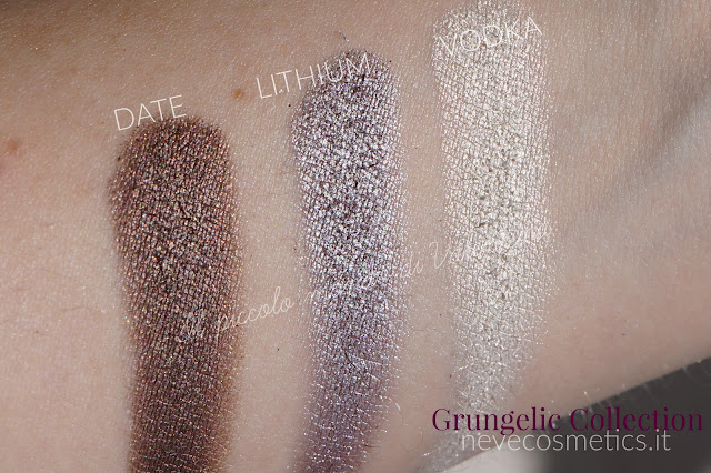 In particolare guardando bene la descrizione dei prodotti ed i primissim swatches ho deciso di optare per l’acquisto di Date, Vodka e Lithium come ombretti , Calm come blush e Plum Brandy per provare un Vernissage ( Non avevo mai provato questo prodotto dell’azienda e sentendone parlare relativamente bene mi sono incuriosita ed ho deciso di provare questa bella tonalità!)