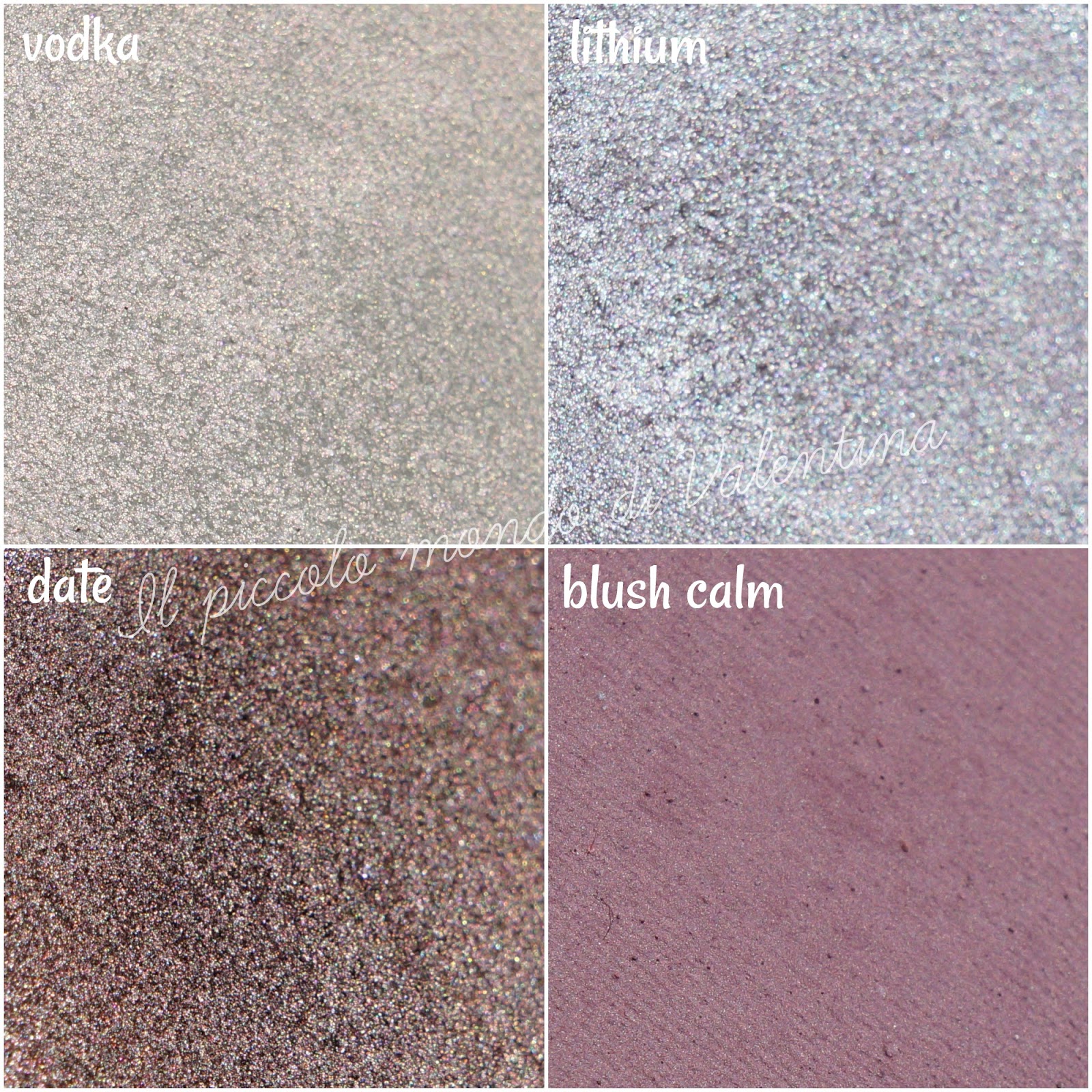 In particolare guardando bene la descrizione dei prodotti ed i primissim swatches ho deciso di optare per l’acquisto di Date, Vodka e Lithium come ombretti , Calm come blush e Plum Brandy per provare un Vernissage ( Non avevo mai provato questo prodotto dell’azienda e sentendone parlare relativamente bene mi sono incuriosita ed ho deciso di provare questa bella tonalità!)