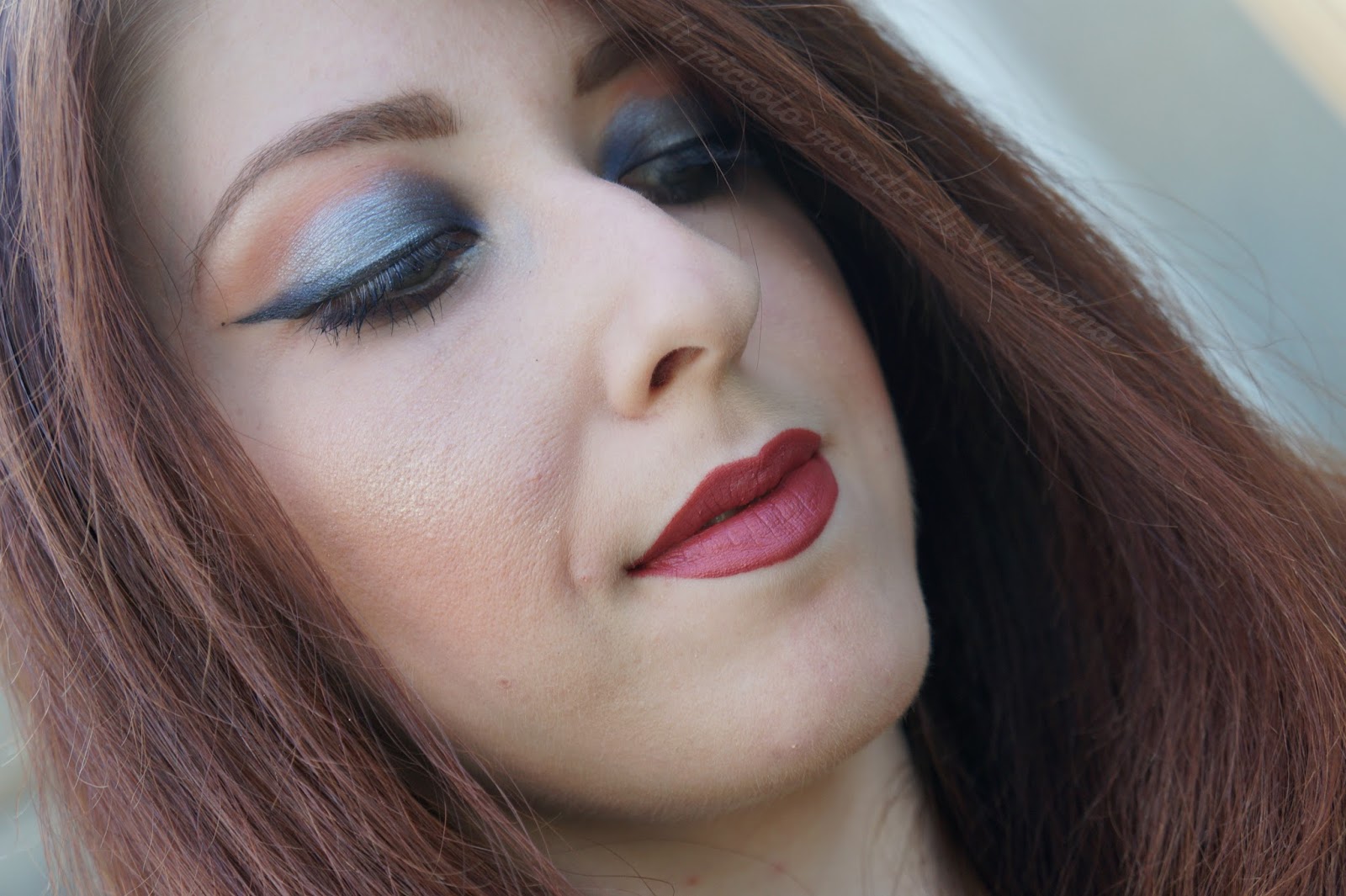 | Occhi realizzati con : #primerbaseocchi e #primerlosepowder successivamente ho usato #pietradiluna Alkemilla Eco Bio Cosmetic per uniformare la palpebra ed ho steso il #tortora della #skintones nella piega dell’occhio. Sono passata a picchiettare il #rossorame nuovissimo ombretto21 con le dita e successivamente ho sfumato usando il #marsala nella piega dell’occhio. Sotto l’arcata sopraccigliare ho applicato #pure di Defa Cosmetics mentre nell’angolo interno dell’occhio ho steso prima come base la #pastelloillusion Neve Cosmetics e successivamente il nuovo ombretto19 #grigiointenso. Nella rima interna ed esterna inferiore ho applicato la #kajal01 sfumata.