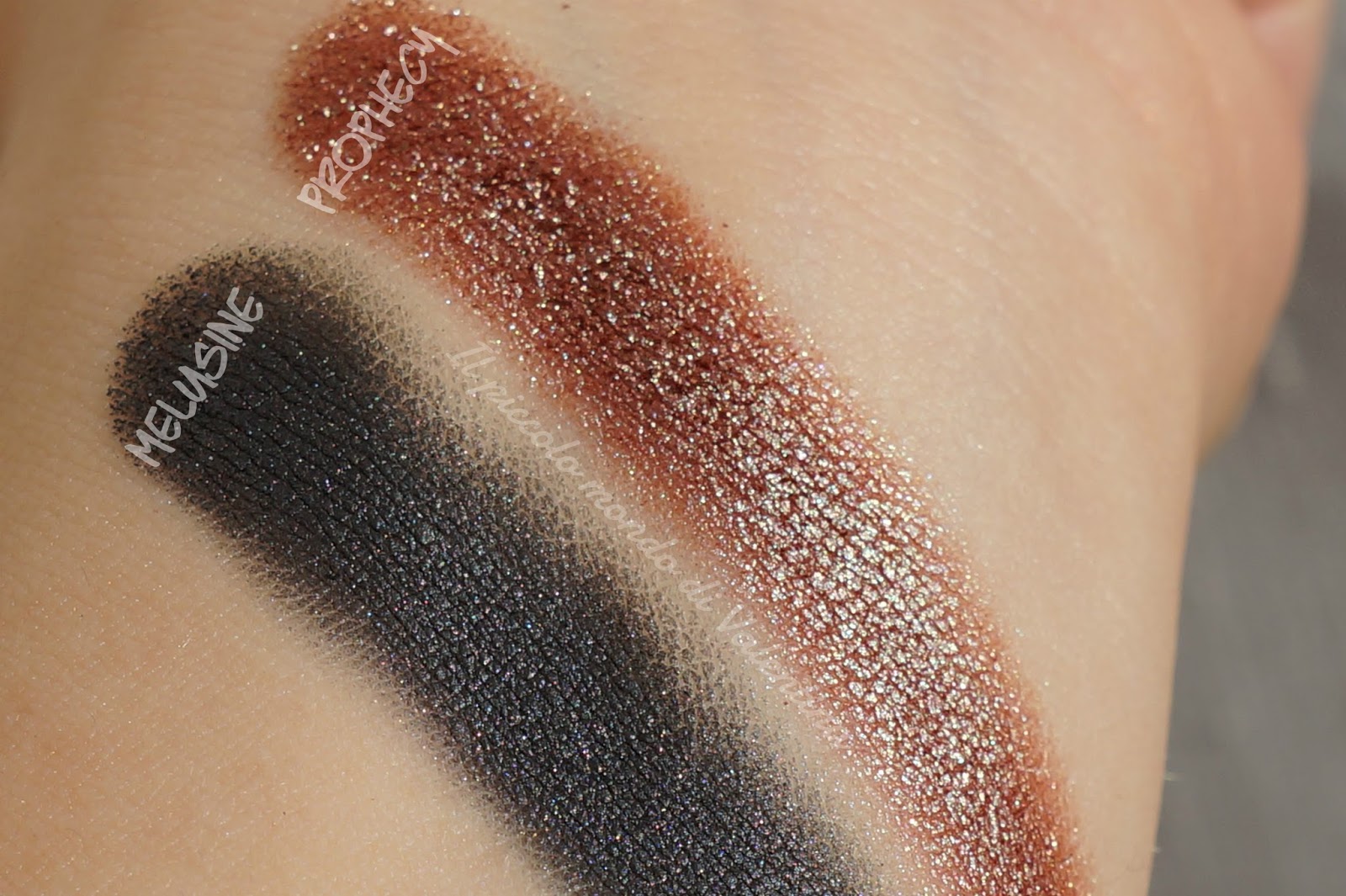 Per i miei gusti ed i miei colori ho scelto Melusine e Prophecy come ombretti, Dagger come pastello occhi , Witch e Mandragora come pastello labbra.