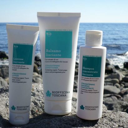 Biofficina Toscana “Linea Lisciante – Shampoo, Balsamo & Lozione” .