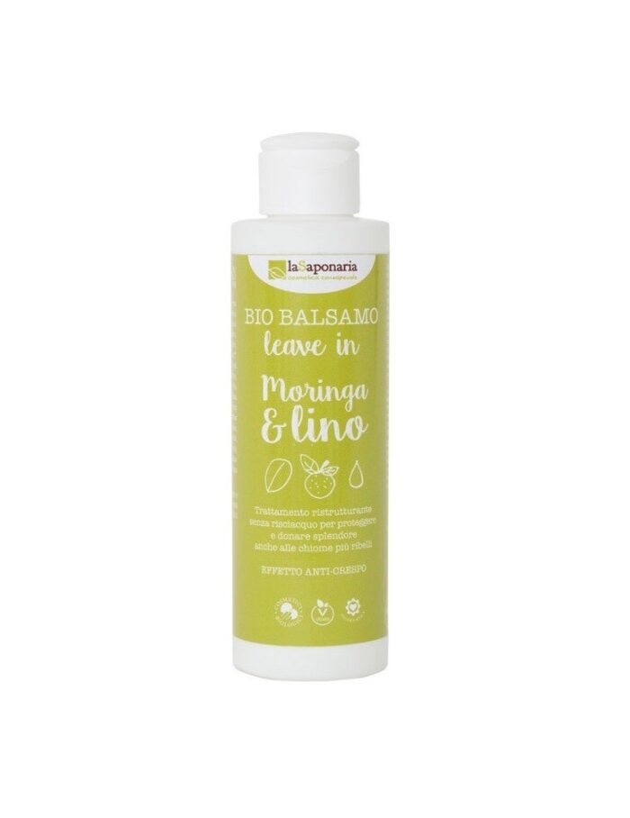 Burro di Karité, estratto di Moringa (chiamata anche pianta miracolosa) e semi di Lino hanno un effetto nutriente e ristrutturante, mentre gli oligosaccaridi della frutta formano un film protettivo e anti-stress donando ai capelli morbidezza, vitalità e brillantezza.