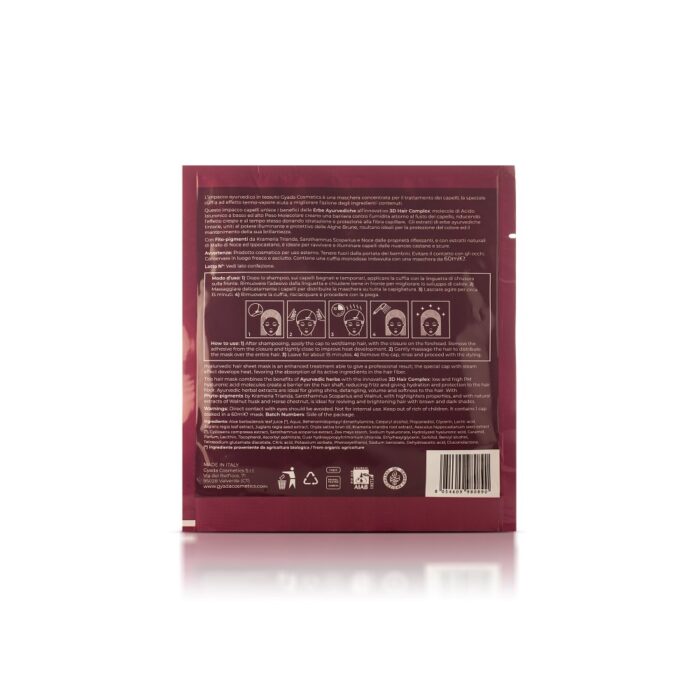 L’impacco ayurvedico in tessuto Gyada Cosmetics è una maschera concentrata per il trattamento dei capelli; la speciale cuffia ad effetto termo-vapore aiuta a migliorare l’azione degli ingredienti contenuti.
