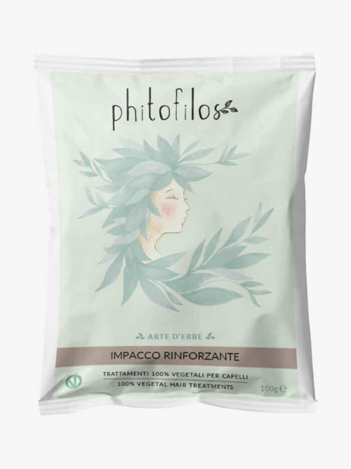 L’Impacco Rinforzante di Phitofilos è una miscela di polveri di cereali ed erbe, da utilizzare in modo specifico per il trattamento salutare e rinforzante del capello. La composizione comprende una sinergia di polveri quali: Miglio, Nasturzio, Equiseto, Erba medica, Betulla, Fieno greco ed Altea. La miscela si caratterizza per la presenza di un’alta percentuale di sali minerali, soprattutto silicio (acido silicico) oltre a magnesio e ferro, aminoacidi solforati (cistina e metionina) e mucillagini, che conferiscono all’Impacco Rinforzante la proprietà di mantenere il benessere delle strutture cheratiniche (capelli e unghie) e di offrire alle stesse forza, vitalità e tono.