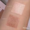 Cipria illuminante satinata con base rosata e riflessi oro pallido.